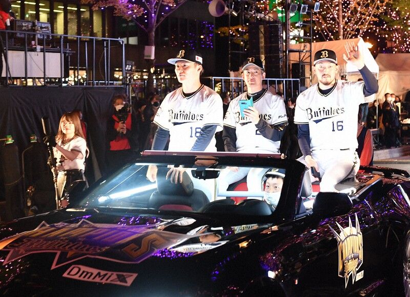 午後5時半すぎ、中嶋聡監督や選手らが乗ったオープンカーやバスが出発してパレードが始まると、集まったファンらが手を振った。中嶋監督は「みなさんの声援のおかげで日本一になれました。盛大なパレードを本当にうれしく思います」と喜びを語った。宮内義彦オーナーに花束を手渡した吉村洋文大阪府知事も「みんなで優勝をお祝いしましょう」と盛り上げた。